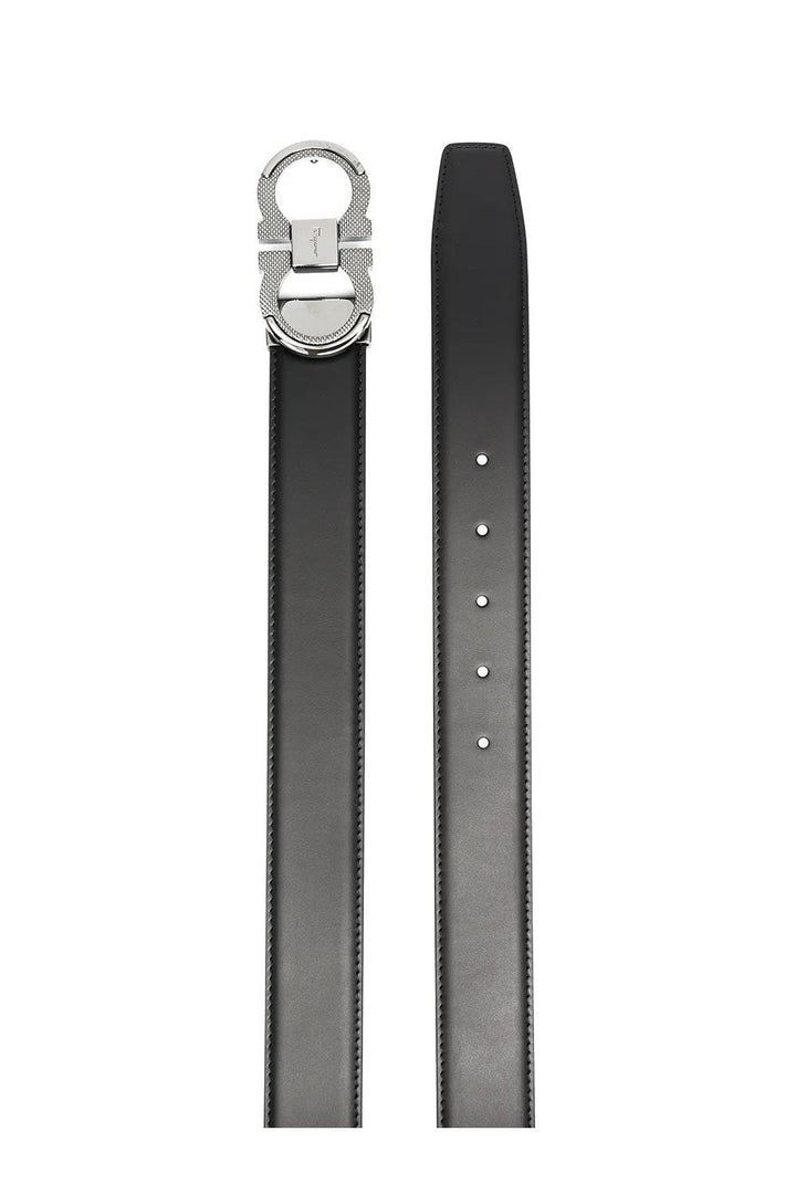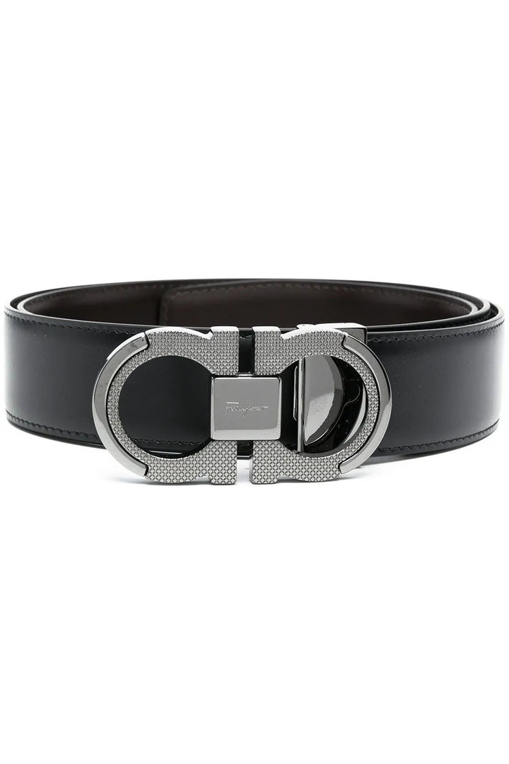 '- black - calf leather - brushed finish - Gancini buckle - tonal stitching - adjustable fit