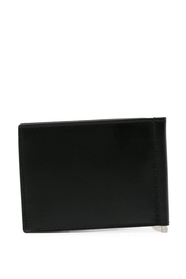 '- black - calf leather - smooth grain - square shape - bi-fold design - logo print to the front - money clip - debossed internal logo - internal card slots