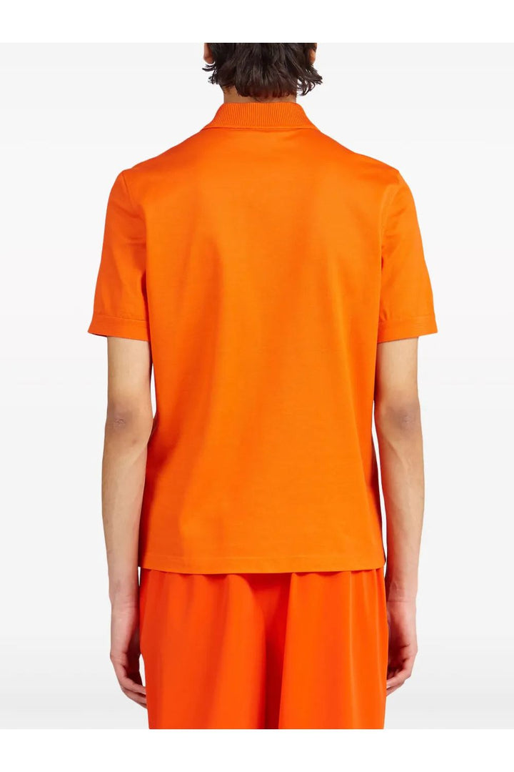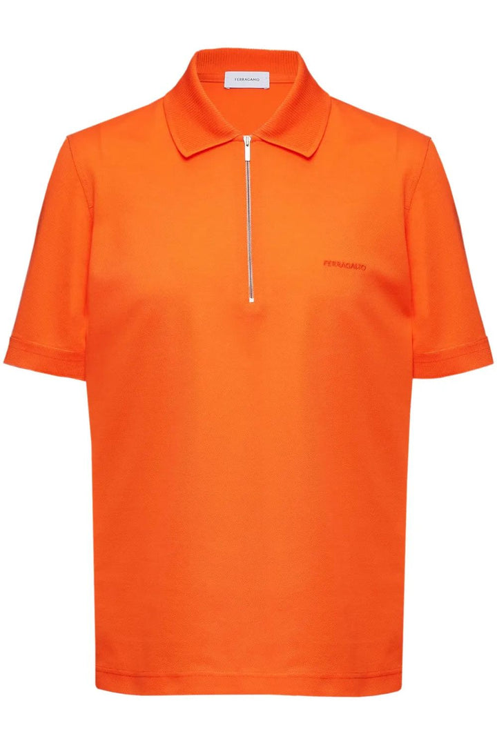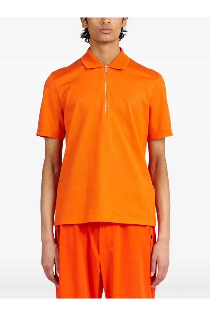 '- orange - cotton - polo collar - half front zip fastening - short sleeves