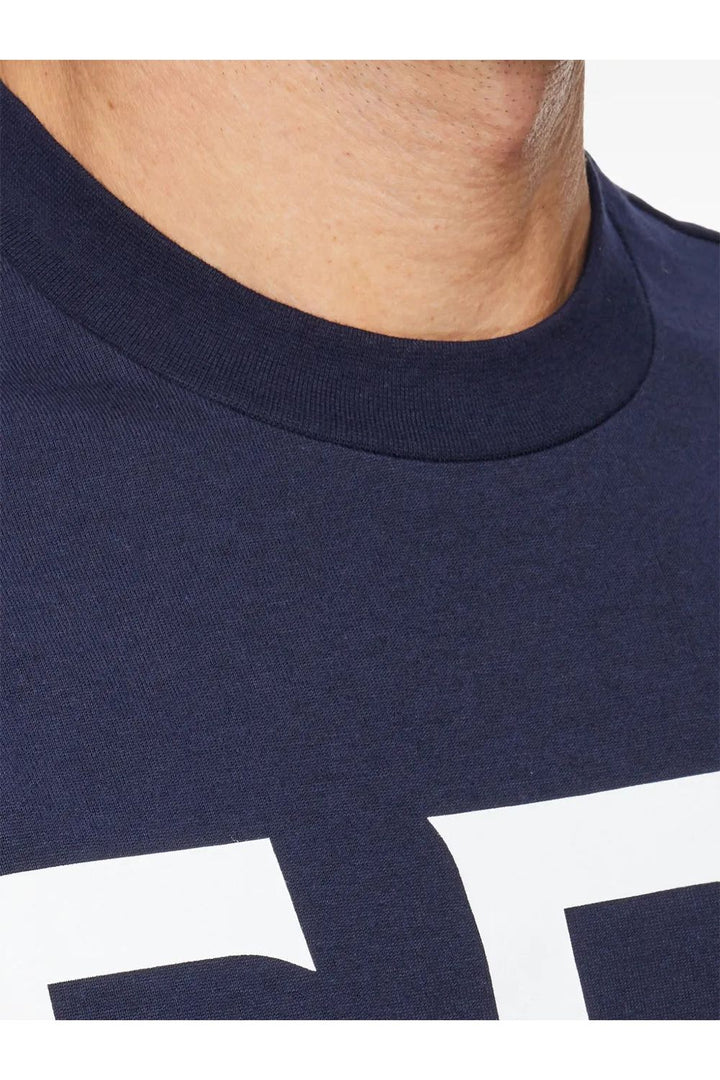 '- navy blue/white - cotton - jersey texture - all-over logo print - crew neck - short sleeves - straight hem