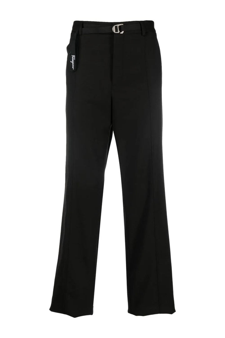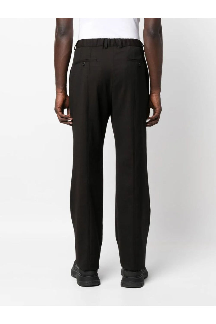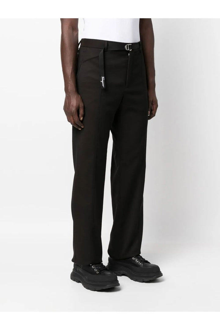 '- brown - virgin wool blend/cotton - straight leg - belted waist - front hook and eye fastening - belt loops - two rear welt pockets