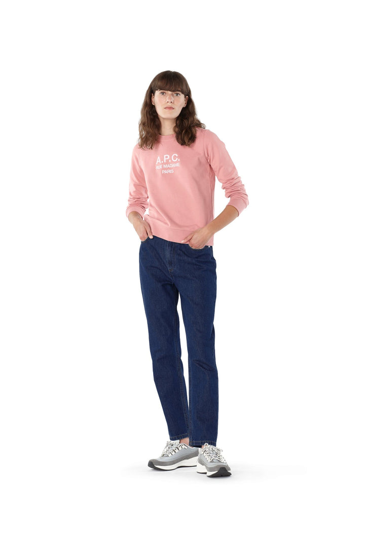 Bouclé fleece. Soft material, pleasant to wear. Straight cut. Crew neckline in sewn-on bias trim. Large contrasting 'A.P.C. Rue Madame' embroidered on front. Long set-in sleeves. Straight hem. Wide elasticated sewn-on trim at hem. 100% Cotton. The model is 5' 8'' tall and is wearing size S.