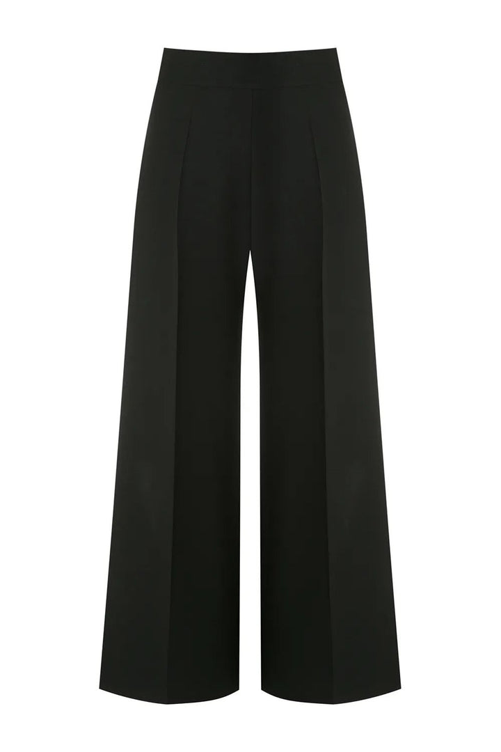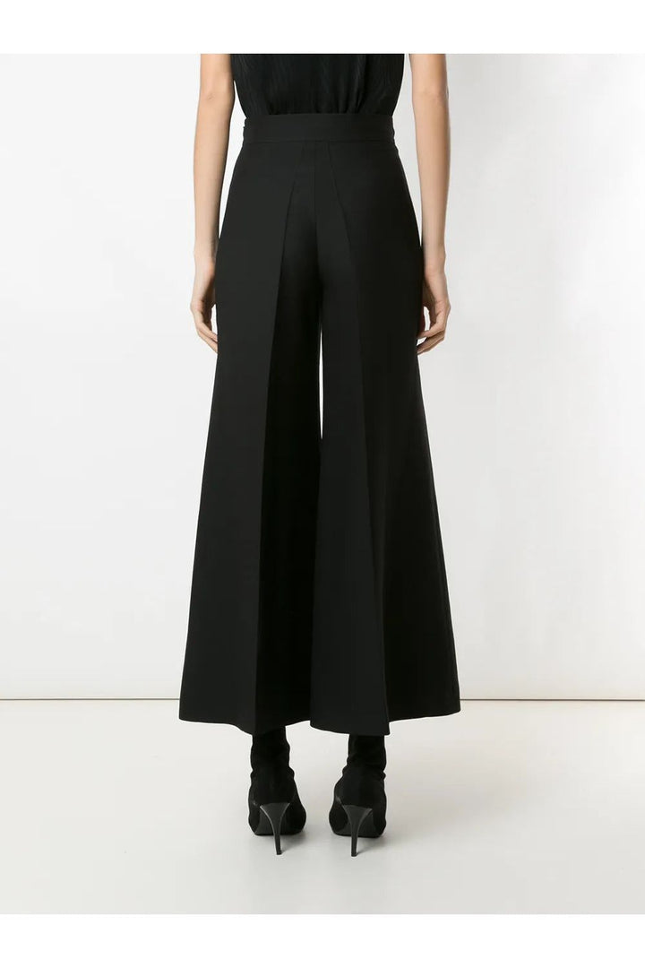 '- Valentino Ready To Wear - black - virgin wool-silk - pressed crease - wide leg - cropped - concealed side hook and zip fastening - high waist