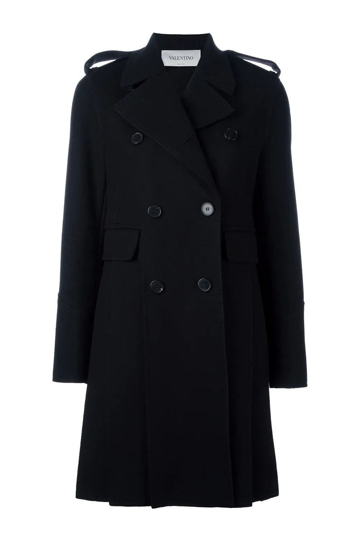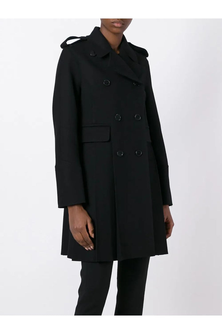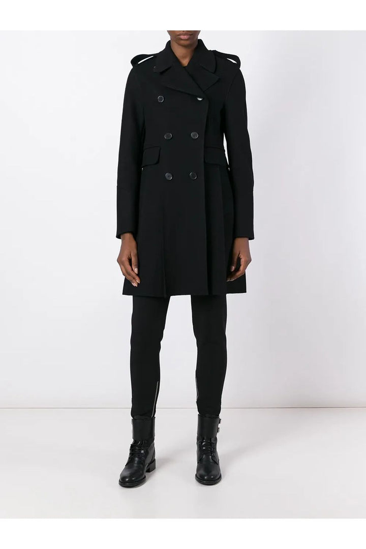 '- Black - virgin wool - black - double-breasted button fastening - two front flap pockets - epaulettes - long sleeves