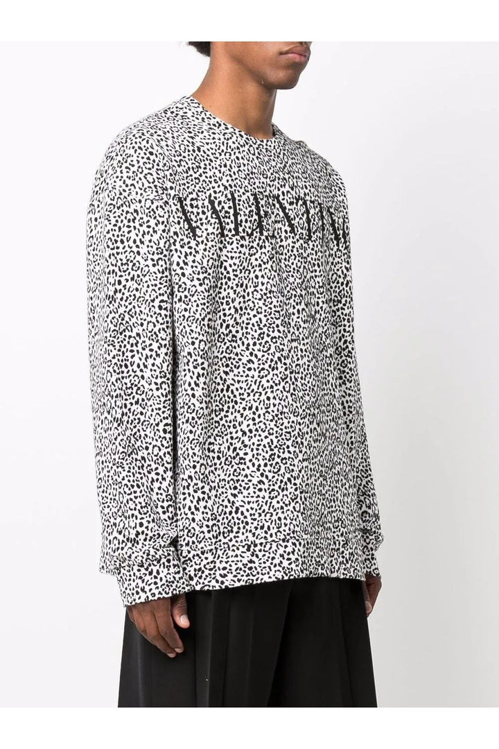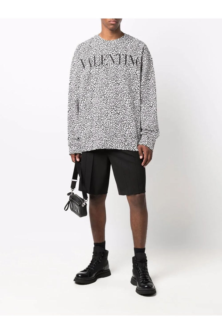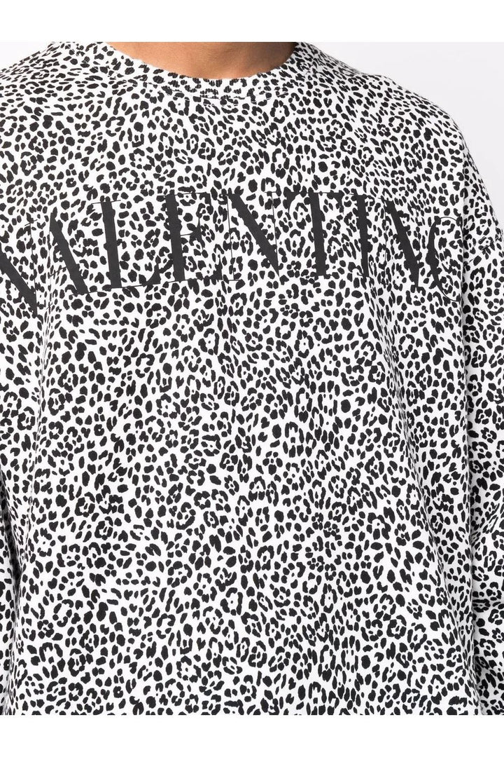 '- Valentino Ready To Wear - black/white - cotton blend - leopard print - logo print at the chest - crew neck - long sleeves