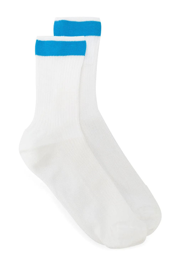 white and blue silk blend stripe detailing ankle length Be sure before opening, as socks and hosiery can only be returned in their original, unopened packaging.