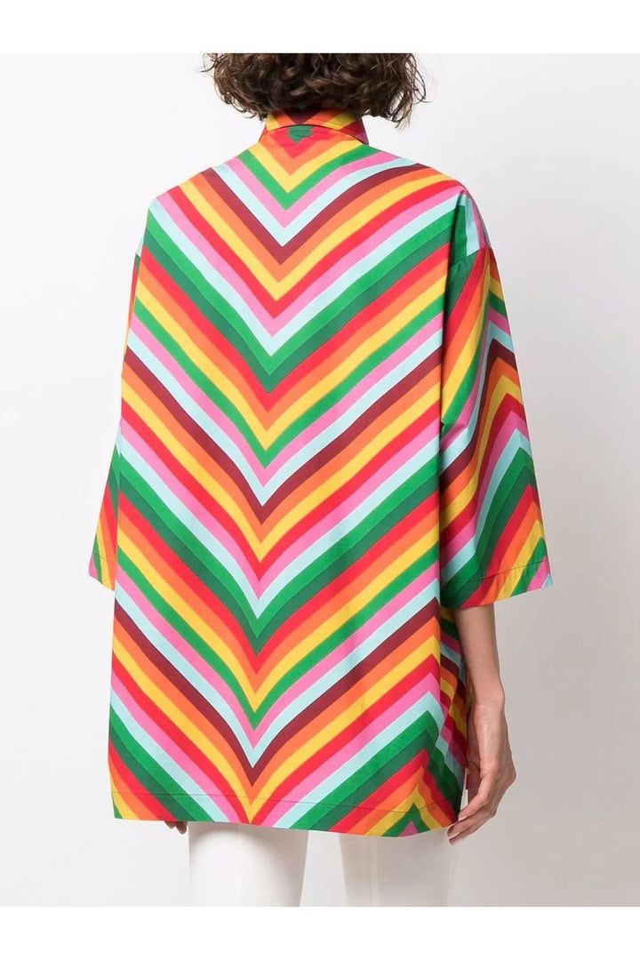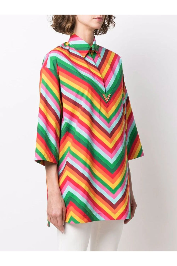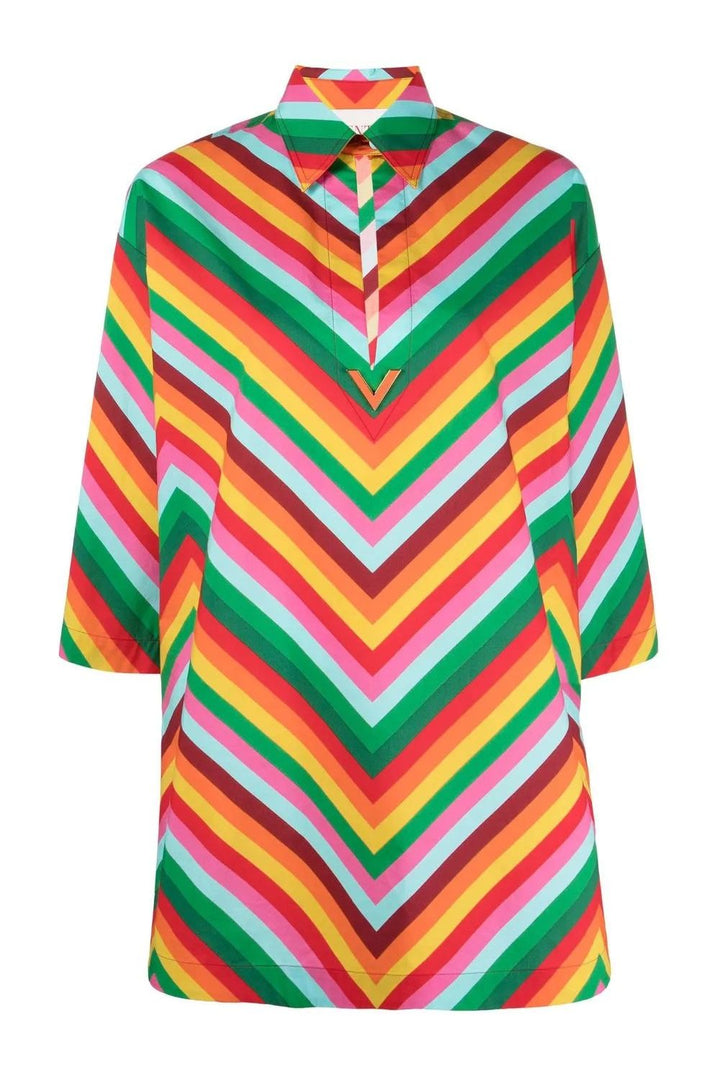 '- Valentino Ready To Wear - multicolour - cotton - logo lettering - stripe detailing - classic collar - drop shoulder - three-quarter length sleeves - straight hem