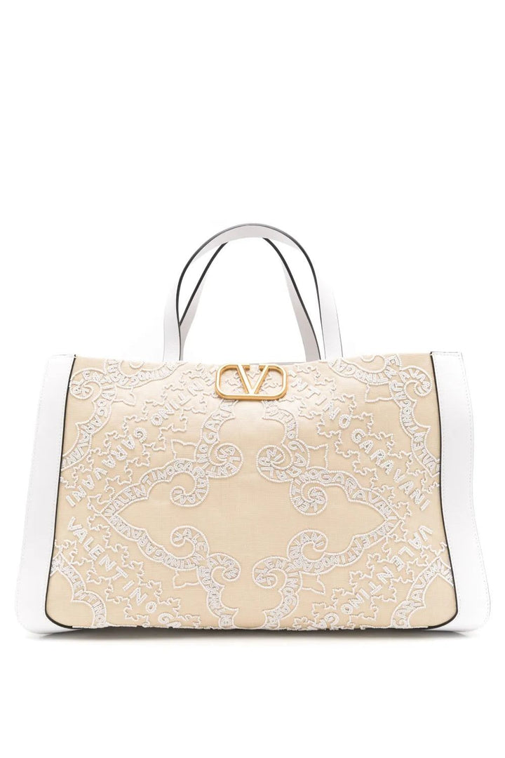 Valentino | Vlogo Embroidered Raffia Tote Bag