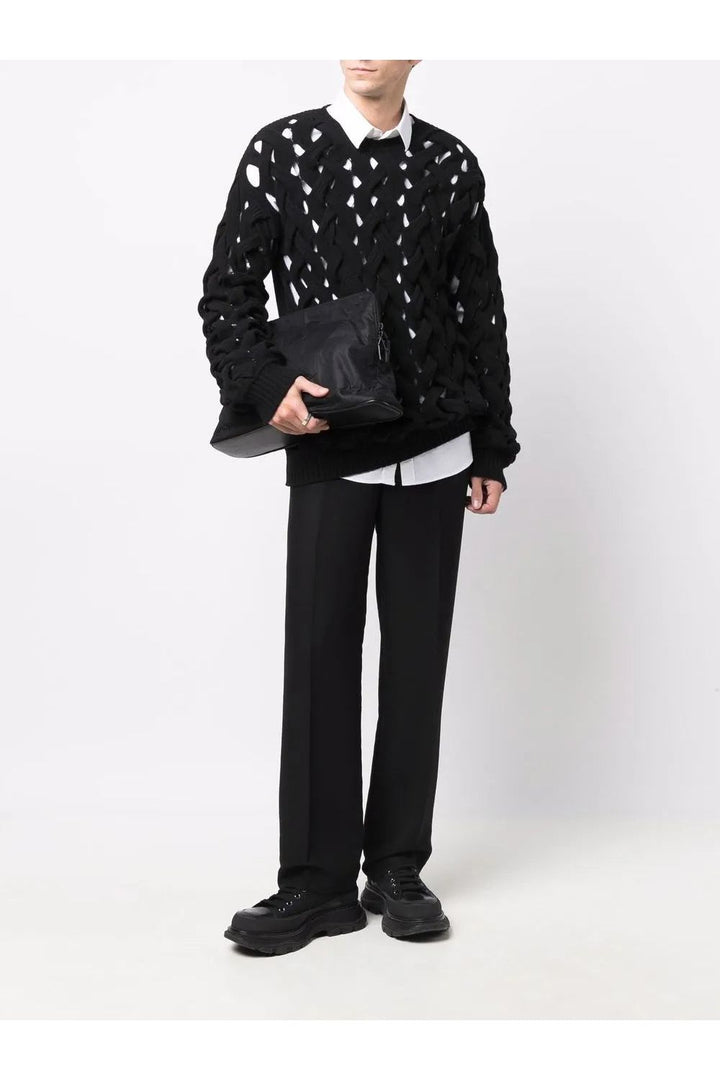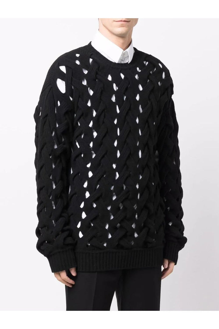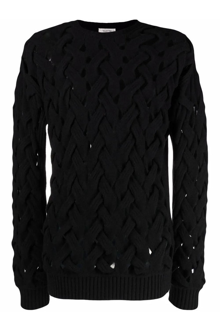 '- Valentino Ready To Wear - black - wool-angora blend - interwoven design - crew neck - long sleeves - ribbed cuffs - ribbed hem
